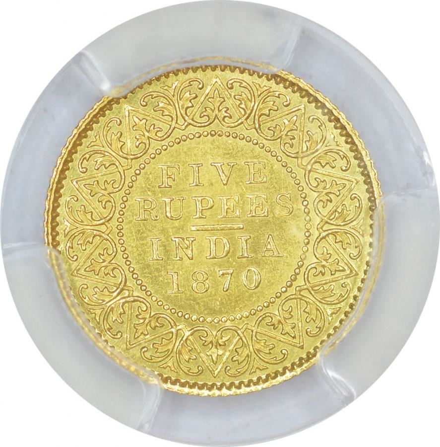 1870,Victoria Queen,Gold 5 Rupees,Royal