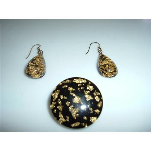 <tr><td>Title:Gold Fleck Pin and Earring Set</td></tr>