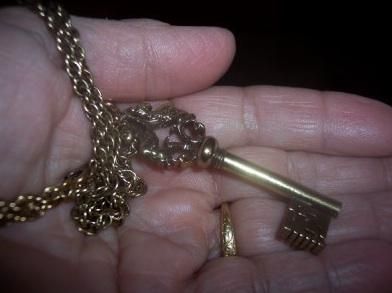 Gold French Renaissance Key Necklace Alva Museum - Ornate key measures 2in in length the chain measures 24in mwf2001