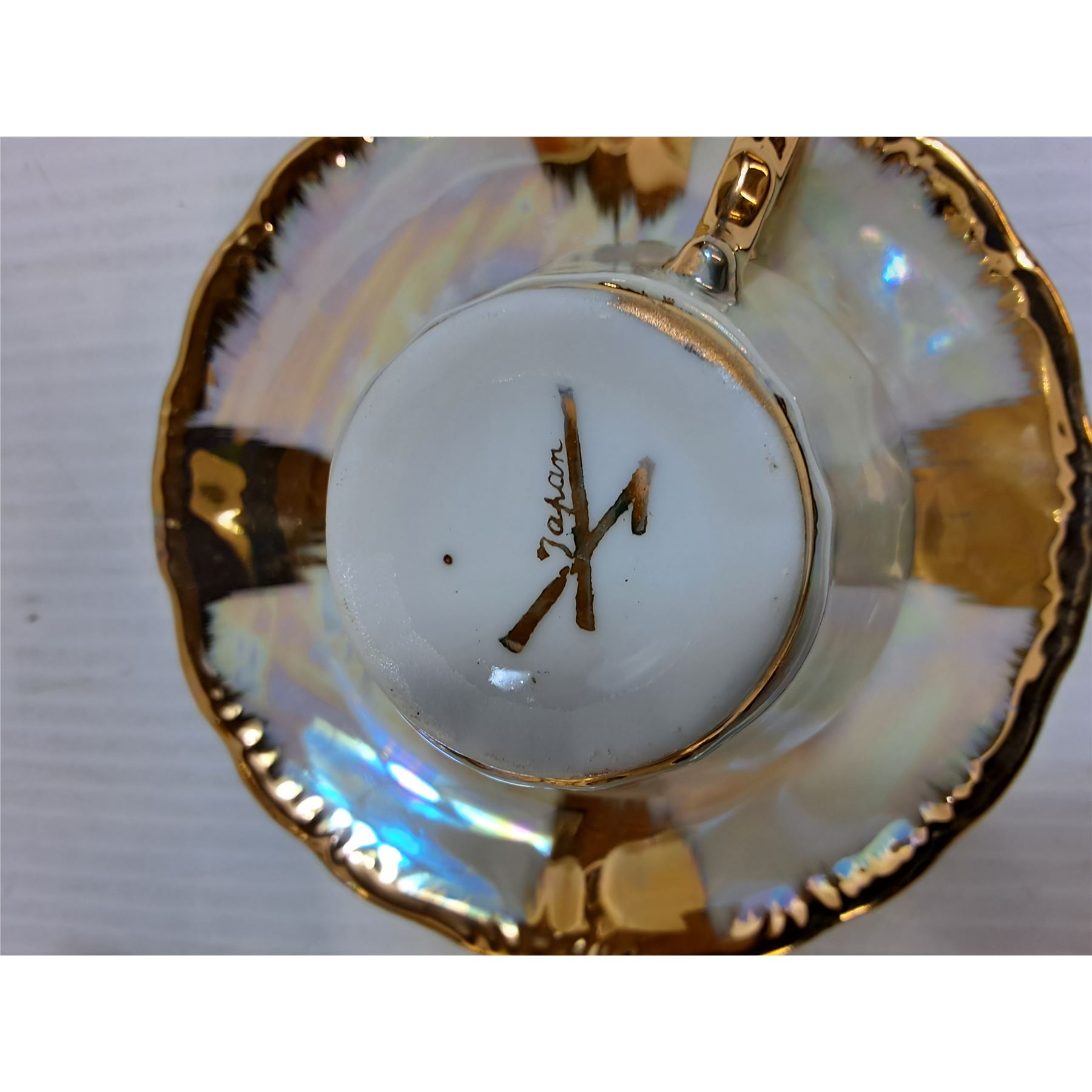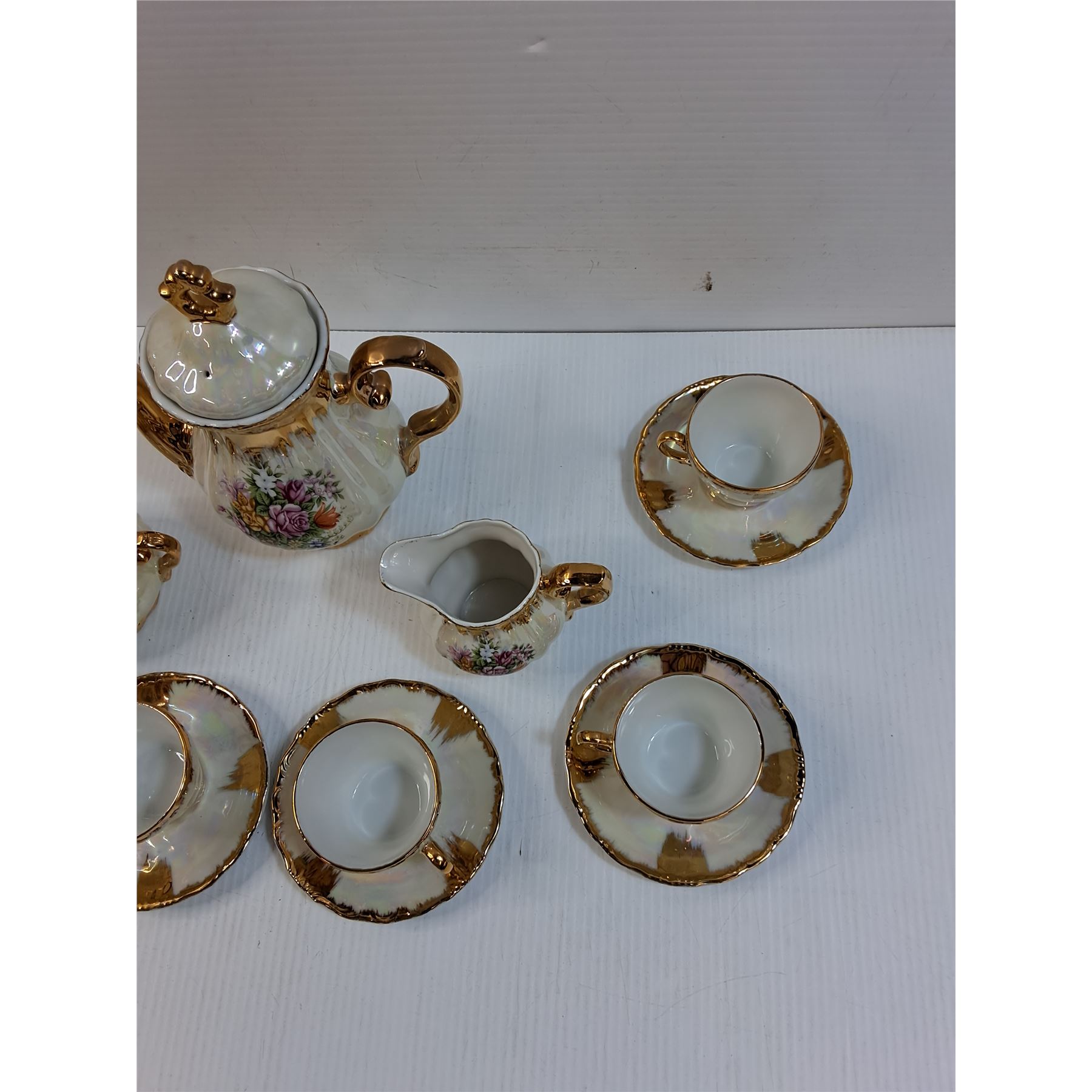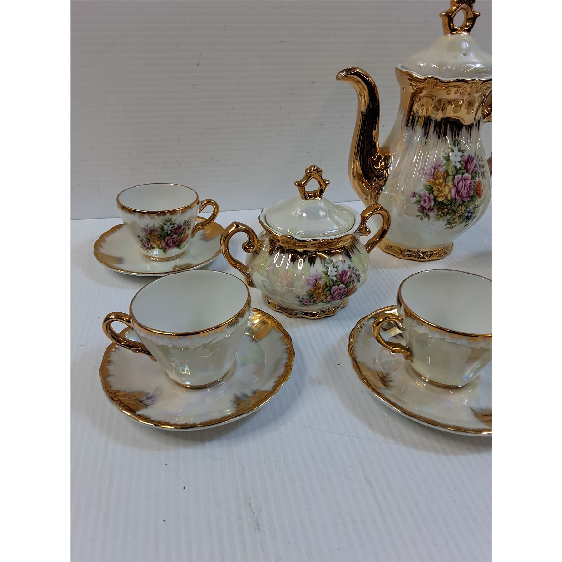 Gold Gilded Floral Theme Tea Set: Tea Pot, Sugar & Creamer Set, (6) Teacup & Saucer Set
