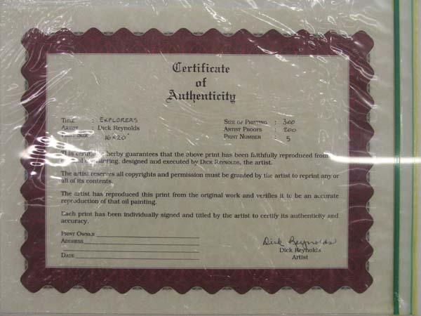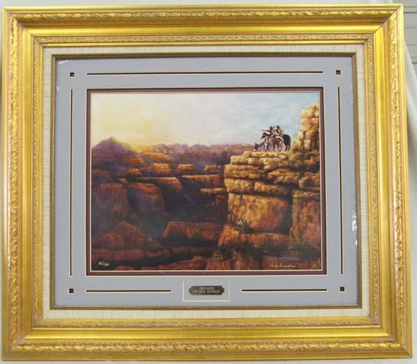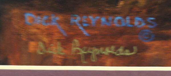 Gold Gilded Framed Signed Print By Dick Reynolds. Framed in a gold gilded frame, double matting, no glass. Does have a ''Certificate of Authenticity'' on the back. 5/300, signed by artist. Visual measures approx. 14''H x 17 3/4''W. There is a white scratch in the sky part of the picture. Buyers Pay Actual Shipping and Handling Charges(see terms and conditions for more information).