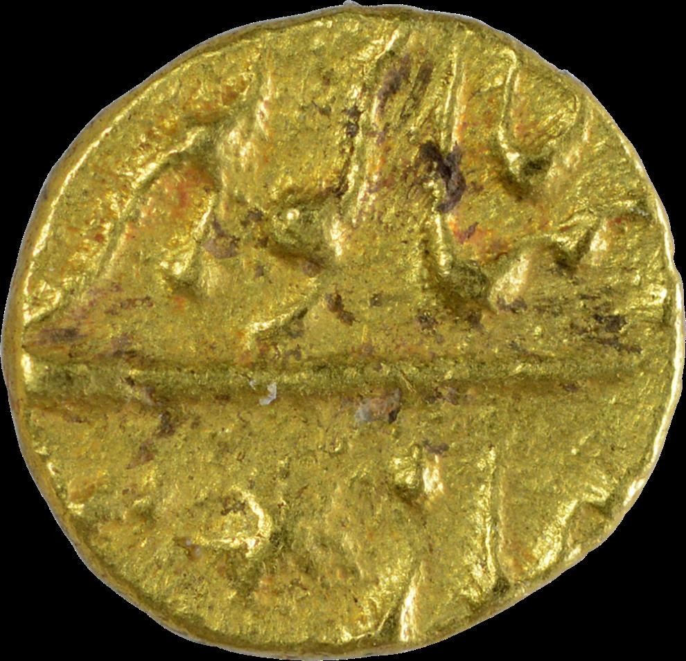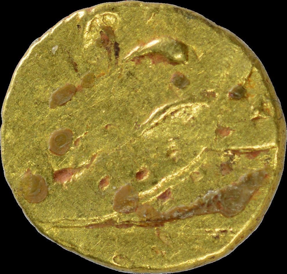 Shah Alam II, Gold Half Fanam,Mintless Type,Obv: Shah gohar ghazi, Rev: Uniface, 0.14g, 3.43mm, about fine.