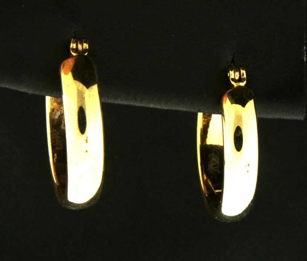In 14k yellow gold. 7/8 inches in diameter. 6.7g.