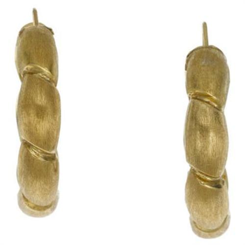 <B>Gold Earrings</B></I><BR><BR>The hoop earrings are designed with a bamboo motif in 18k textured yellow gold. Gross weight 16.50 grams. <BR>*Note: earrings are designed for pierced ears<BR><I>Dimensions: 1-5/8 inches x 1-9/16 inches</B></I> <B>Condition Report:</B> Very good condition.<BR><BR><b>Shipping:</b> Miscellaneous Collectibles, Smal (<a target="_blank" href="http://www.heritageauctions.com/common/shipping.php">view shipping information</a>)