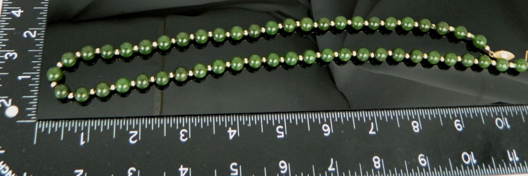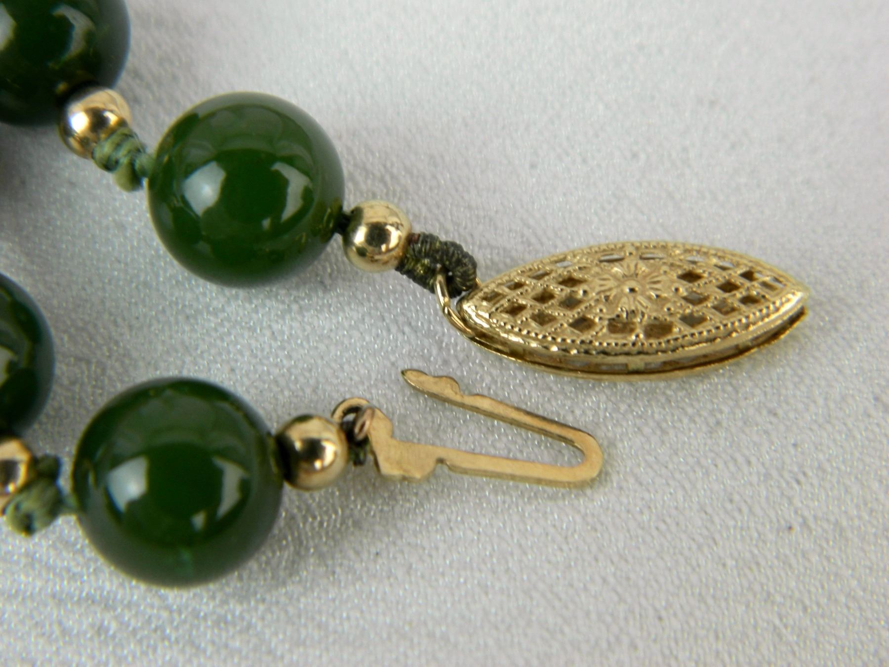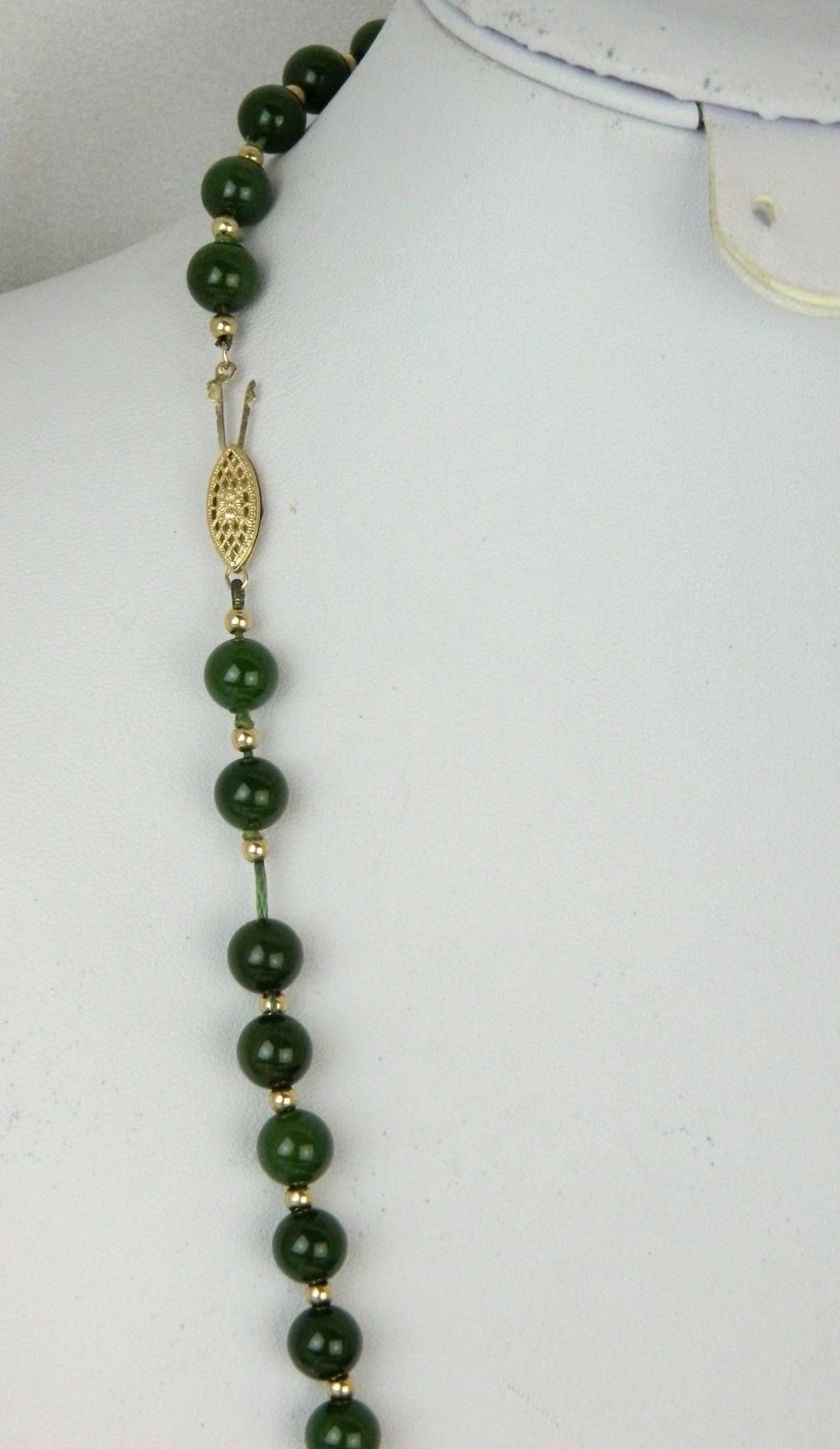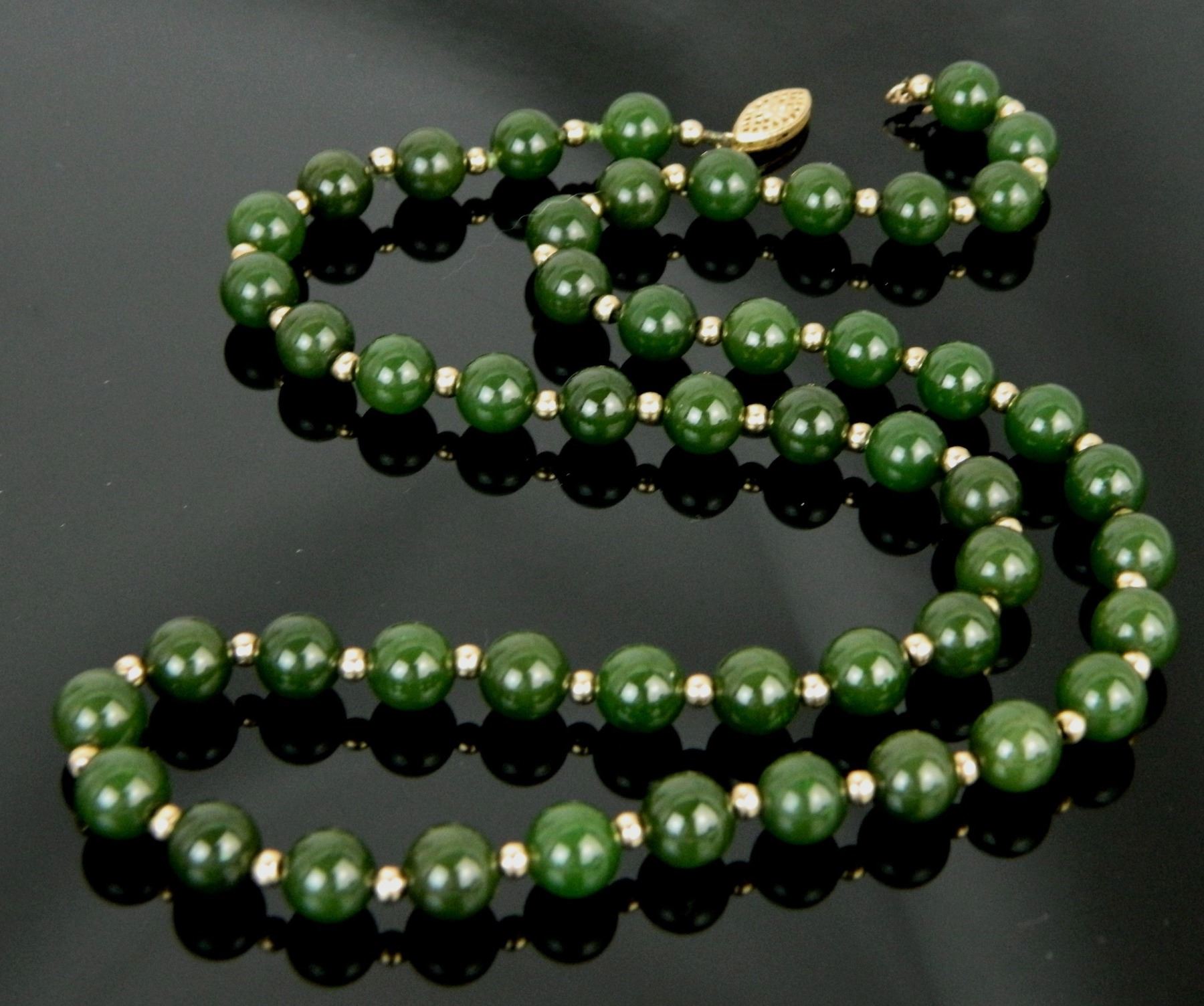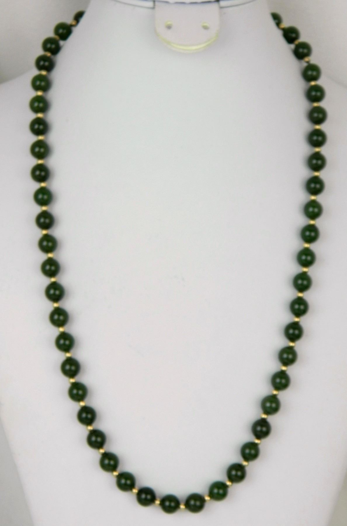 Contemporary Yellow Gold And Dark Green Jade Bead Necklace