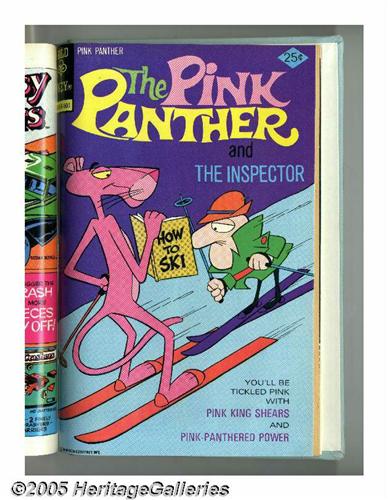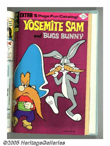<B>Gold Key Bound Volumes (Gold Key, 1974).</B></I> These are Western Publishing file copies which were trimmed and bound into five volumes. The comics were in Near Mint condition when bound, and they look superb. Included here are <B>Tweety and Silvester</B></I> #36-42, <B>Yosemite Sam</B></I> #20-26, <B>Walter Lantz Andy Panda</B></I> #4-7; <B>Woody Woodpecker</B></I> #135-141; <B>The Inspector</B></I> #1-3; <B>Pink Panther</B></I> #18-24; <B>Baby Snoots</B></I> #16-19; <B>The Wacky Adventures of Cracky</B></I> #7-10; <B>Little Monsters</B></I> #25-28; <B>Wacky Witch</B></I> #14-17; <B>Woodsy Owl</B></I> #3-6; and <B>Magnus Robot Fighter</B></I> #35-38. Approximate Overstreet VG 4.0 value for group = $225. <I>From the Random House Archives.</B></I>