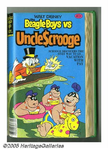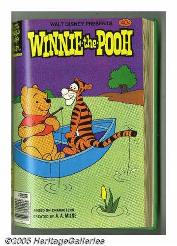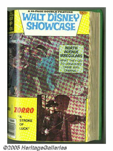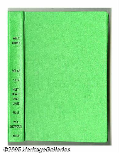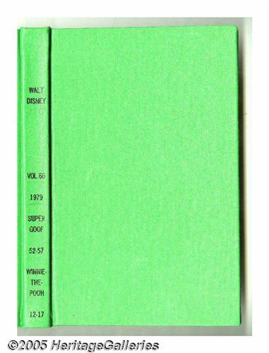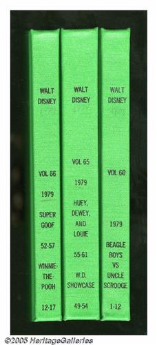 <B>Gold Key Disney Comics Bound Volumes (Gold Key, 1979).</B></I> These three bound volumes all feature assorted Disney titles published during 1979. Vol. 60 features <B>Beagle Boys versus Uncle Scrooge</B></I> #1-12. Vol. 65 includes <B>Huey Dewey and Louie Junior Woodchucks</B></I> #55-61 (with reprinted work by Carl Barks) and <B>Walt Disney Showcase</B></I> #49-54. Vol. 66 has <B>Super Goof</B></I> #52-57 and <B>Winnie-the-Pooh</B></I> #12-17. All comics were Western Publishing file copies that were bound and trimmed into hardback books to be used for office reference. These particular bound volumes look unused, with most comics appearing brand new. Overstreet 2005 VG 4.0 value for group = $126. <I>From the Random House Archives.</B></I>