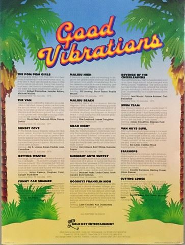 Gold Key Entertainment (ca. 1980). An extremely rare and colorful oversized Advertising Press Book promoting the company’s first run feature films. The films are: The Pom Pom Girls (1976), The Van (1977), Sunset Cove (1978), Getting Wasted (1980), Funny Car Summer (1973), Malibu High (1979), Malibu Beach (1978_), Grad Night (1980), Midnight Auto Supply (1978), Goodbye Franklin Hight (1978), Revenge of the Cheerleaders (1976), Swim Team (1979), Van Nuys Blvd. (1979), Starhops (1978) and Cutting Loose . The book is inside a plastic sleeve. There are creases, minor paper loss, and very minor edge wear damage. Very Fine. (12" X 16").