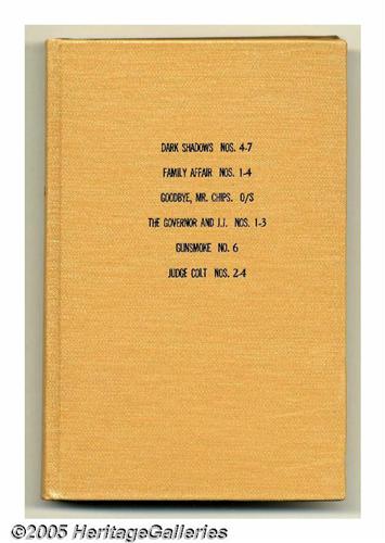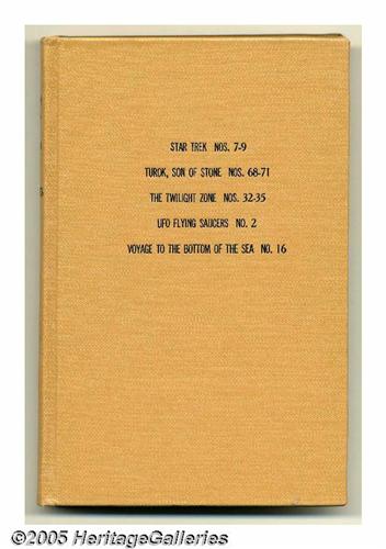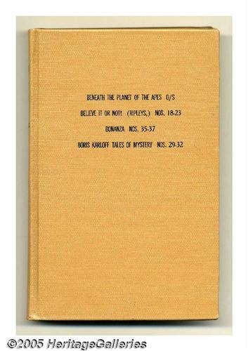 <B>Gold Key Miscellaneous Titles Bound Volumes (Gold Key, 1970).</B></I> These are Western Publishing file copies which have been trimmed and bound into three hardcover volumes. The comics were obviously bound when new, and are in superb condition. The spines of the books have "N.Y. Titles" embossed on them; the comics inside are as follows: <B>Movie Comic: Beneath the Planet of the Apes</B></I> (including poster); <B>Movie Comic: Goodbye Mr. Chips</B></I>; <B>Ripley's Belive it or Not</B></I> #18-23; <B>Bonanza</B></I> #35-37; <B>Boris Karloff Tales of Mystery</B></I> #29-32; <B>Dark Shadows</B></I> #4-7; <B>Family Affair</B></I> #1-4 (#1 includes the original poster); <B>The Governor and J.J.</B></I> #1-3; <B>Gunsmoke</B></I> #6; <B>Judge Colt</B></I> #2-4; <B>Star Trek</B></I> #7-9; <B>Turok</B></I> #68-71; <B>Twilight Zone</B></I> #32-35; <B>UFO Flying Saucers</B></I> #2; and <B>Voyage to the Bottom of the Sea</B></I> #16. Approximate Overstreet VG 4.0 value for group = $375. <I>From the Random House Archives.</B></I>