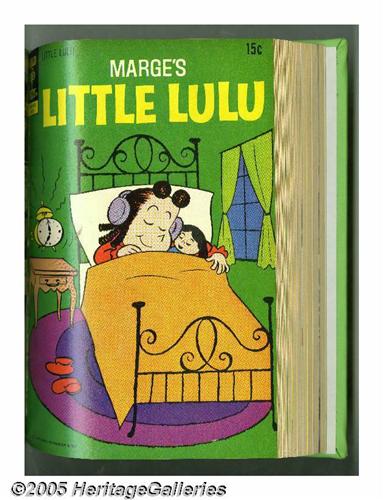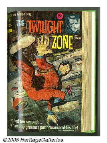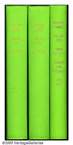 <B>Gold Key Miscellaneous Titles Bound Volumes (Gold Key, 1972).</B></I> These are Western Publishing file copies which have been trimmed and bound into three hardcover volumes. The comics were obviously bound when new; their condition is superb. The comics included here are <B>Bullwinkle</B></I> #3-6; <B>Lancelot Link</B></I> #4-8; <B>Marge's Little Lulu</B></I> #203-206; <B>Little Lulu</B></I> #207-209; <B>Lone Ranger</B></I> #17; <B>Mod Wheels</B></I> #6 and 7; <B>New Terrytoons</B></I> #15-19; <B>O. G. Whiz</B></I> #6; <B>Raggedy Ann and Andy</B></I> #3 and 4; <B>Smokey Bear</B></I> #9-13; <B>Star Trek</B></I> #14-17; <B>Turok</B></I> #76-82; <B>Twilight Zone</B></I> #42-47; and <B>UFO Flying Saucers</B></I> #3. The cover of <B>Mod Wheels</B></I> #6 has tape repair. Approximate Overstreet VG 4.0 value for group = $325. <I>From the Random House Archives.</B></I>