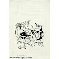 <B>Gold Key Studios - New Terrytoons #11 Cover Original Art (Western, 1971).</B></I> We all dread that trip to the dentist, with nightmares of drilling and tooth pulling in the back of our minds. This dental disaster in the making features Heckle and Jeckle, poised on the precipice of an oral ordeal. Energetic lines bring vitality to the characters even while they retain an almost abstract quality. The artwork measures 9.5" x 12.75" and is in Excellent condition. A copy of the printed comic is also included.
