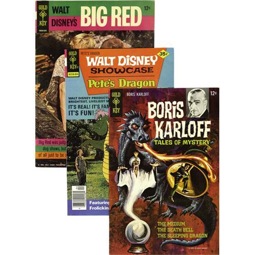 <B>Gold Key TV and Movie Comics Box Lot (Gold Key, 1961-73) Condition: Average FN/VF.</B></I> Movie and TV show adaptations and spin-offs comprise the bulk of this lot of some 150-175 comics. Included are multiple copies of <B>The Man From U.N.C.L.E.</B></I> #2, 3, 6, 7 (first appearance of Jet Dream), 12, 14, 15, 16, 17, 18, 19, 21, and 22, and <B>Boris Karloff Tales of Mystery</B></I> #17, 19, 20, 24, 25, 28, 30, 35, and 46; <B>Zorro</B></I> (Dell) #9, 12, and 15; <B>The Scarecrow</B></I> #1, 2, and 3 inclusive; and <B>Walt Disney Showcase</B></I> #10 (Napoleon and Samantha), 43 (Pete's Dragon), and 53 (The Scarecrow of Romney Marsh); as well as multiple copies of <B>The Rifleman</B></I> #20 and the Movie Comics <B>Old Yeller</B></I>, <B>Son of Flubber</B></I>, <B>Kidnapped</B></I>, <B>Mary Poppins</B></I>, <B>The Prince and the Pauper</B></I>, <B>Blackbeard's Ghost</B></I>, <B>Big Red</B></I>, <B>In Search of the Castaways</B></I>, <B>Bullwhip Griffin</B></I>, <B>Nikki, Wild Dog of the North</B></I>, and <B>The Legend of Lobo</B></I>. The overall condition is VF, and many grade higher. Approximate Overstreet value for group = $4,000. <I>From the Random House Archives.</B></I>