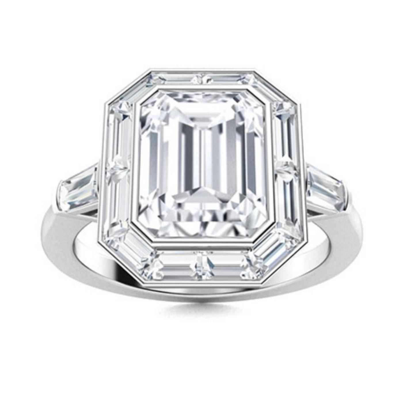 Gold & Lab Octagon Diamond 5.50 Cts Ring - E/VVS