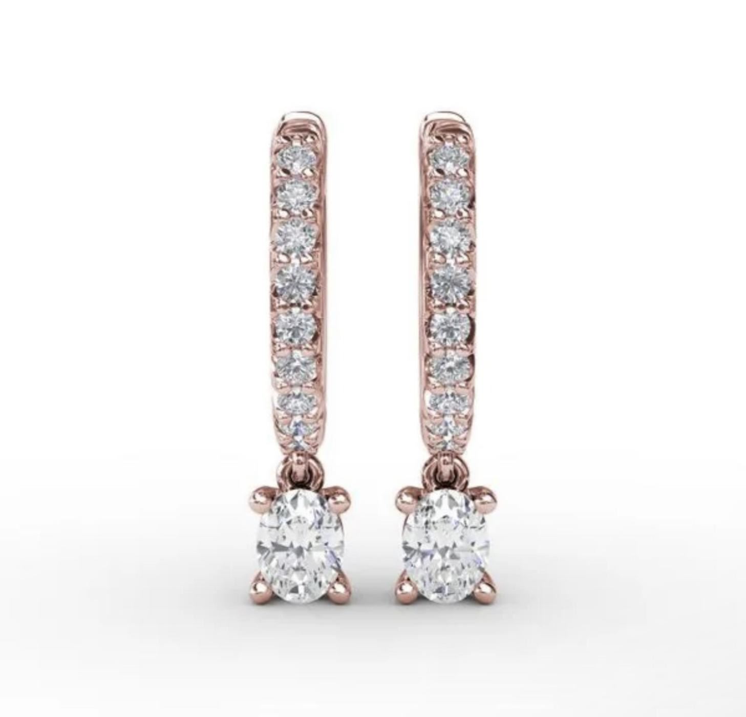 Gold & Lab Oval & Round Diamond 5.20 Cts Earrings