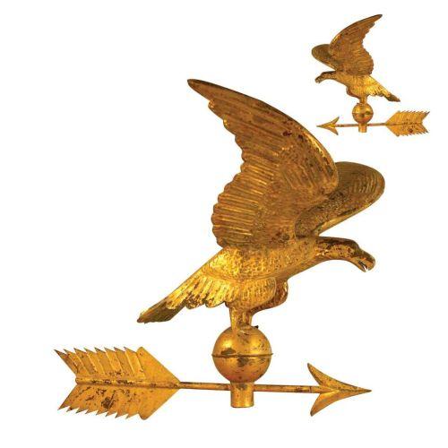 Rare Eagle Weathervane Gold Leaf Tin. Most of original gold still intact. Guaranteed Old and original. Not a Reproduction. Excellent condition. 24 X 18 X 24 1/2 inches.