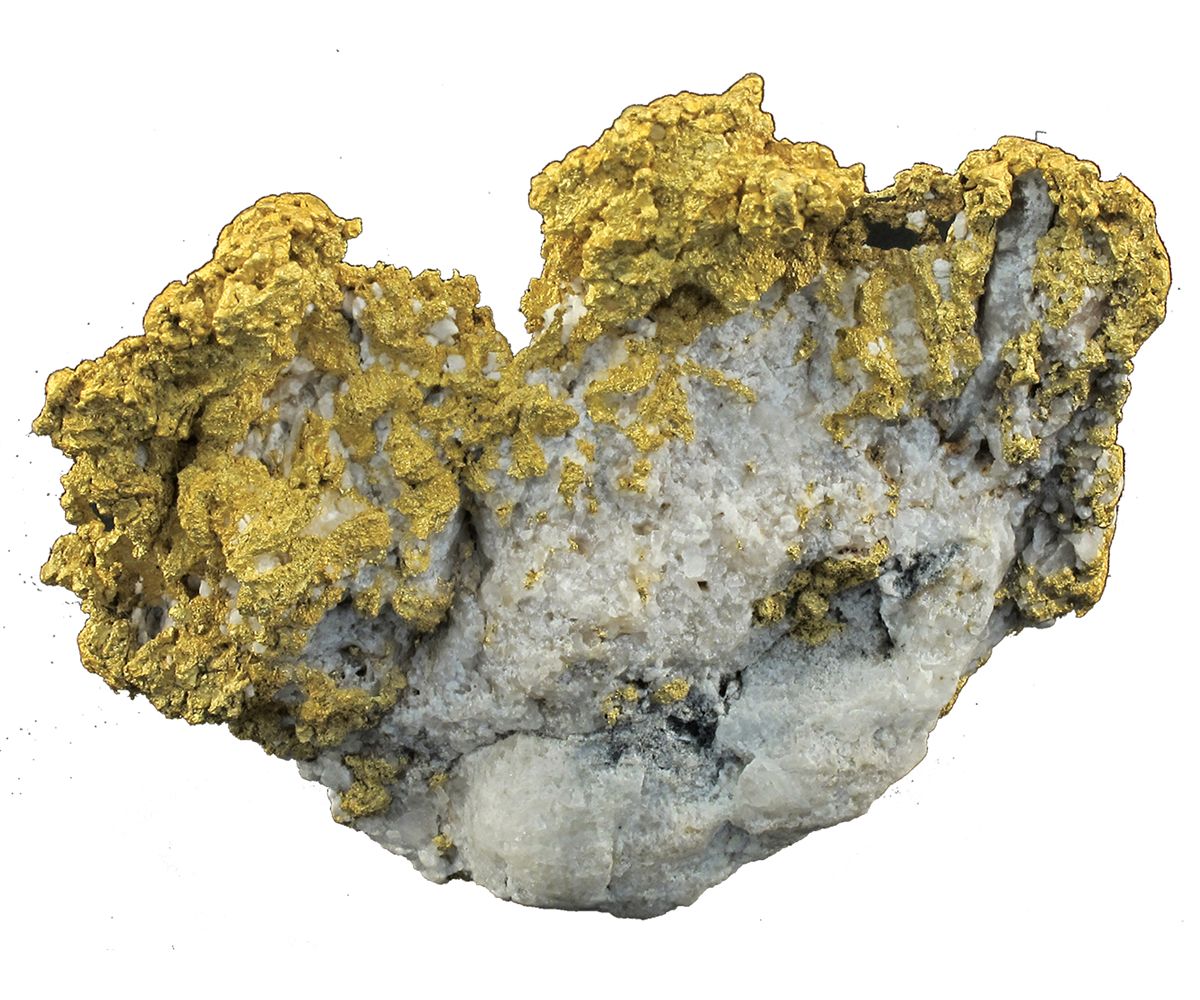 This specimen weighs 8.69 troy oz. and is about 70% gold by weight. Measures: 3" x 1.25" x 2.5". Nice gold in quartz specimen professionally curated by Collectors Edge Minerals in Golden, Colorado, from a gold in quartz cobble. - HKA#49230