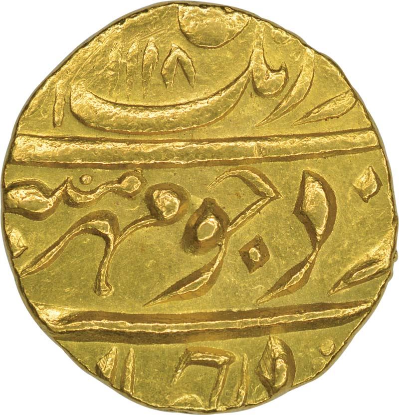 Gold Mohur of Aurangzeb of Zafarabad Mint.
