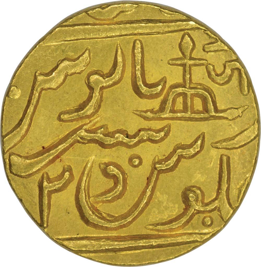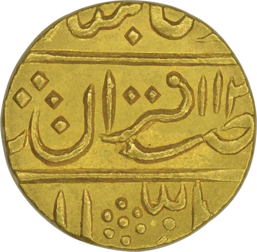 Gold Mohur of Gwalior of Jankoji Rao in the name of Muhammad Shah of Lashkar Mint.
