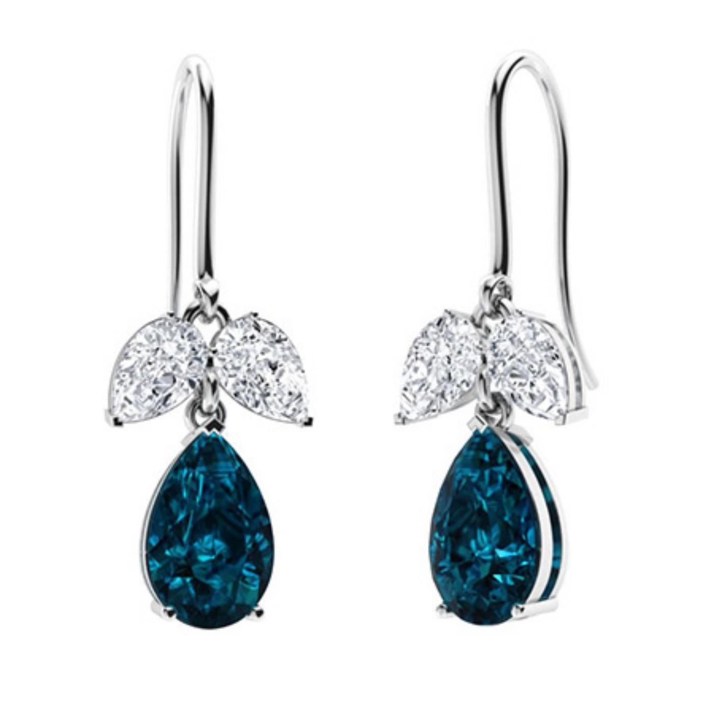14k Gold (You may choose yellow, white or Rose Gold) , Natural London Topaz 4.00 Cts Lab Diamonds 2.00 Cts - E-F-G/ VVS-VS; .( All Our Diamonds are Guarnteed authentic Lab Grown Diamonds)( Note - 7 days shipping time after the payment received) Matching Pendant and ring can also be made at additional cost.(This London Topaz also can be replaced with diamonds or any other colored stones example - swiss topaz, garnet, amethyst or citrine etc- please confirm with us the cost if you like any other stone replacemnt)