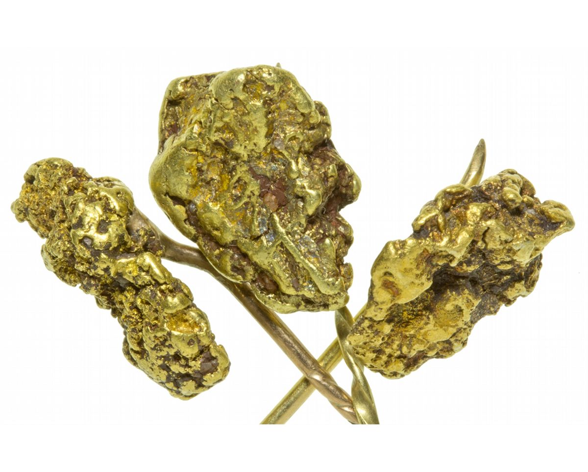 Lot of 3 gold nugget stickpins totalling .45 troy ounces. HKA#62646