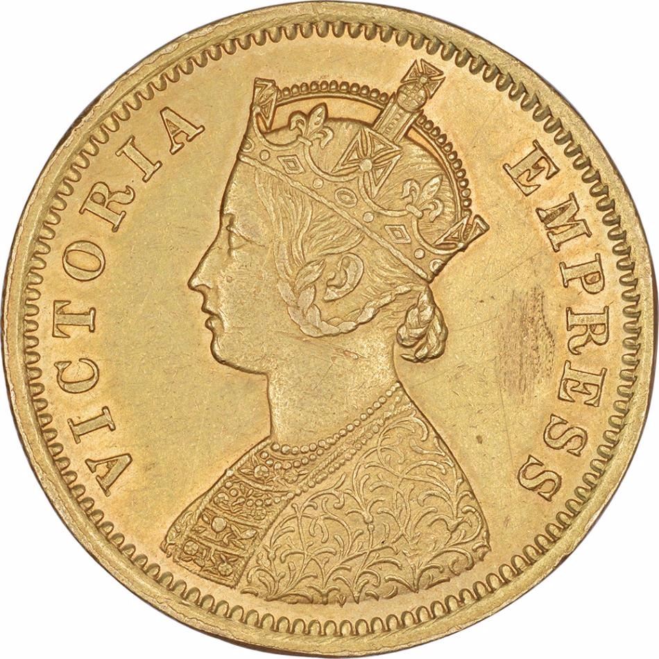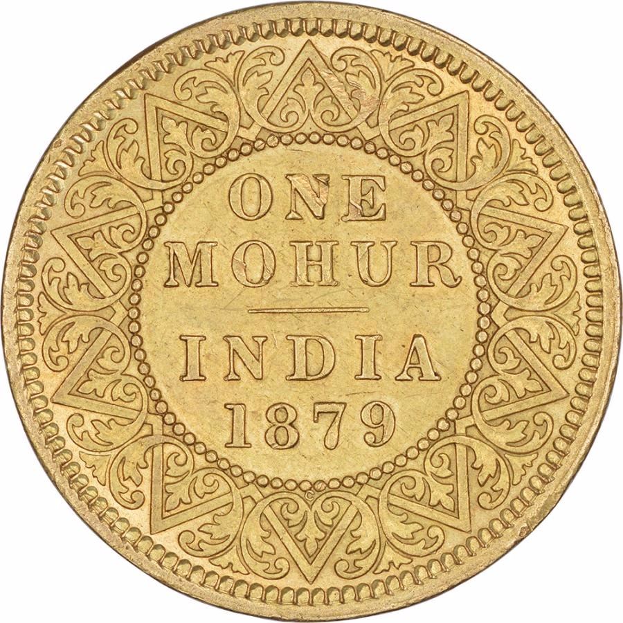 Gold One Mohur Coin of Victoria Empress of Calcutta Mint of 1879.