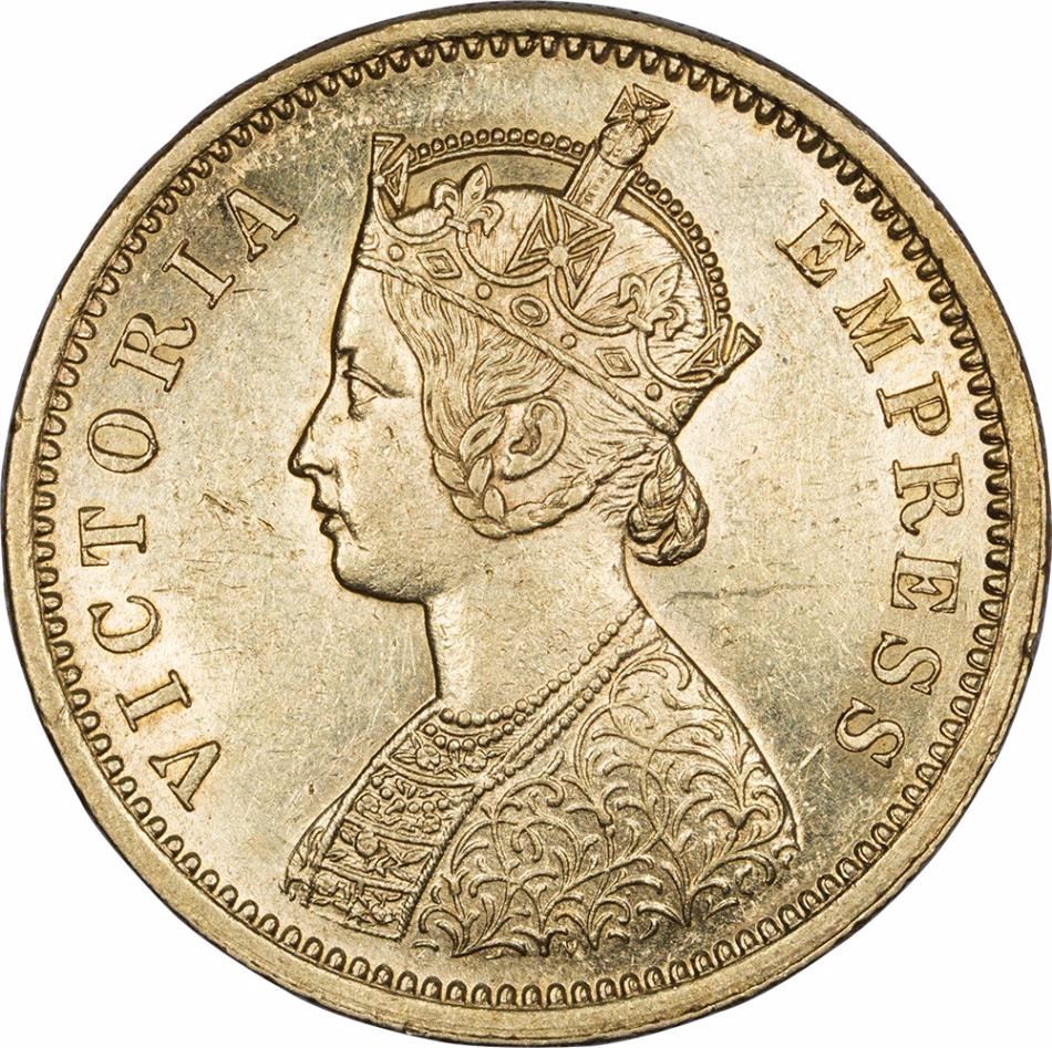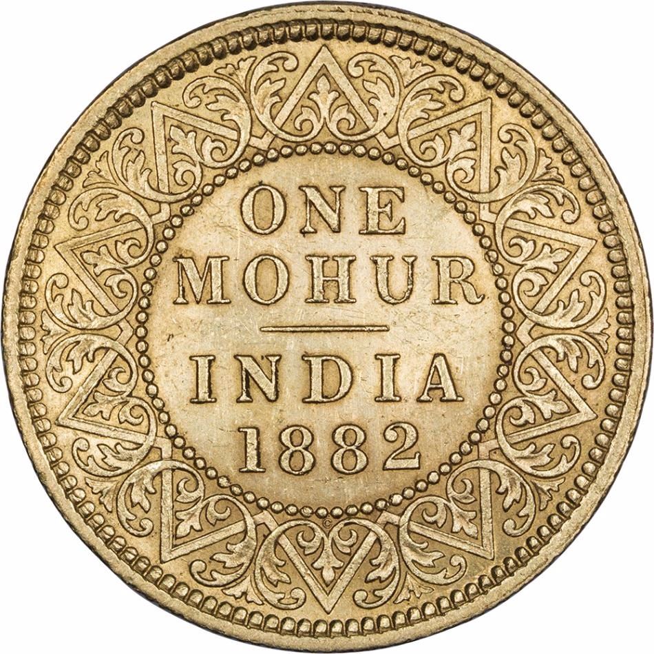 Gold One Mohur Coin of Victoria Empress of Calcutta Mint of 1882.
