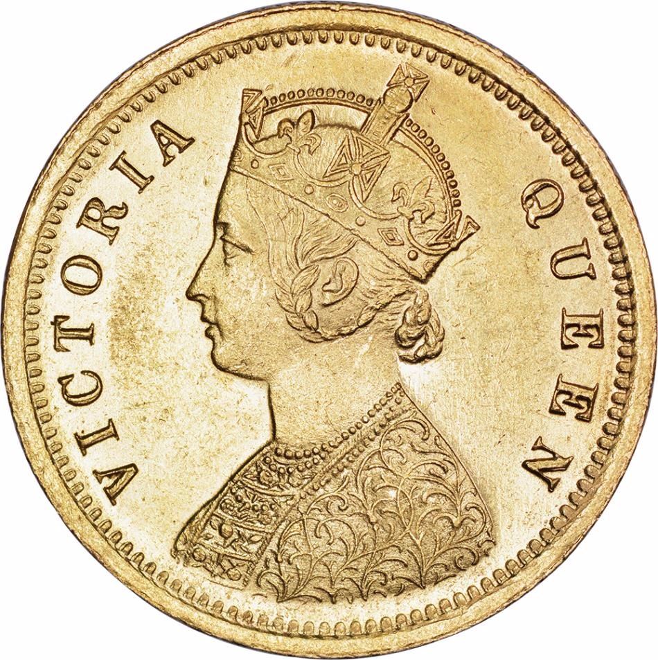 In the Victoria Queen, India period series of the mohurs 1875 is the only date other than 1862 and seldom appears in auction sales. This specimen is of an exceptional quality and very tough.