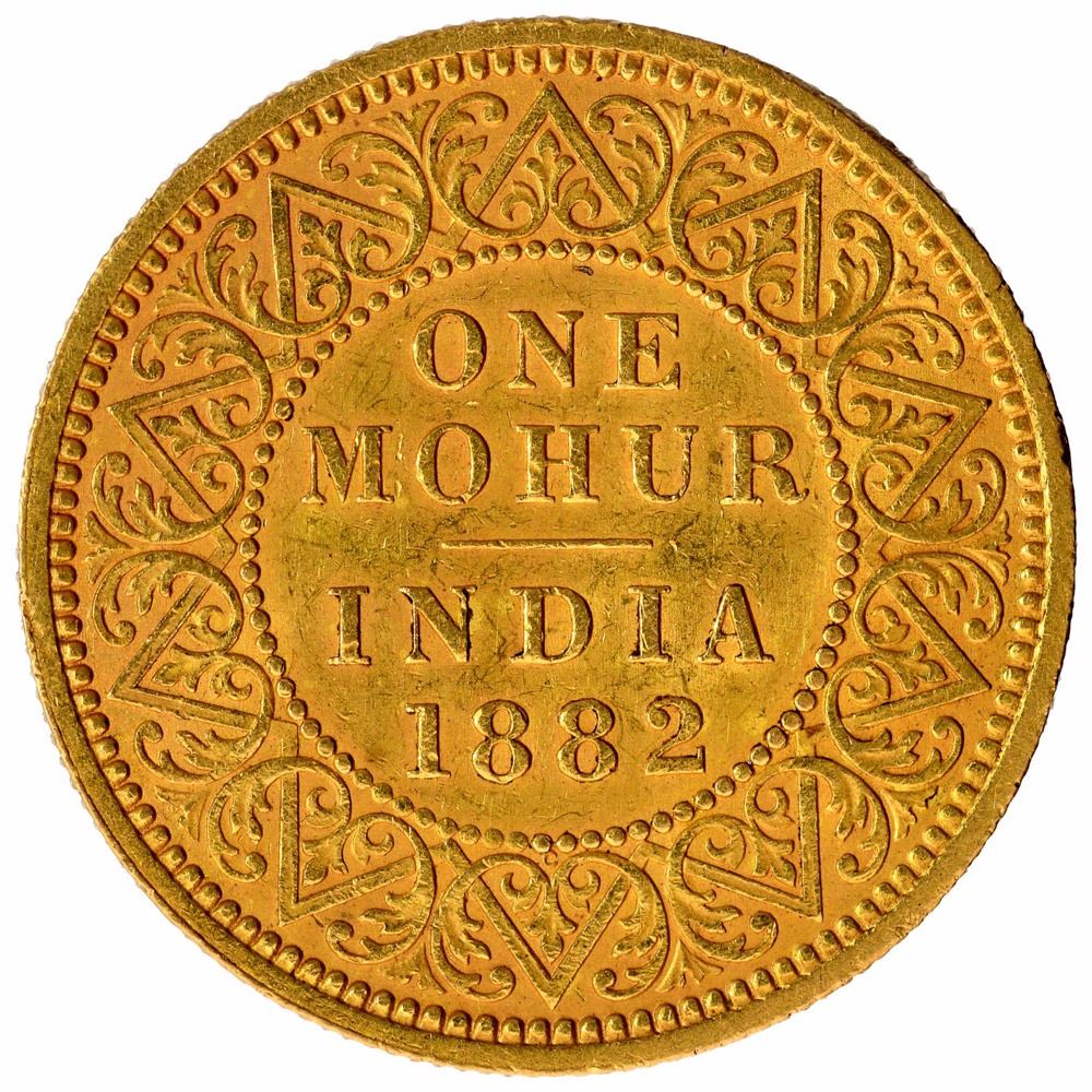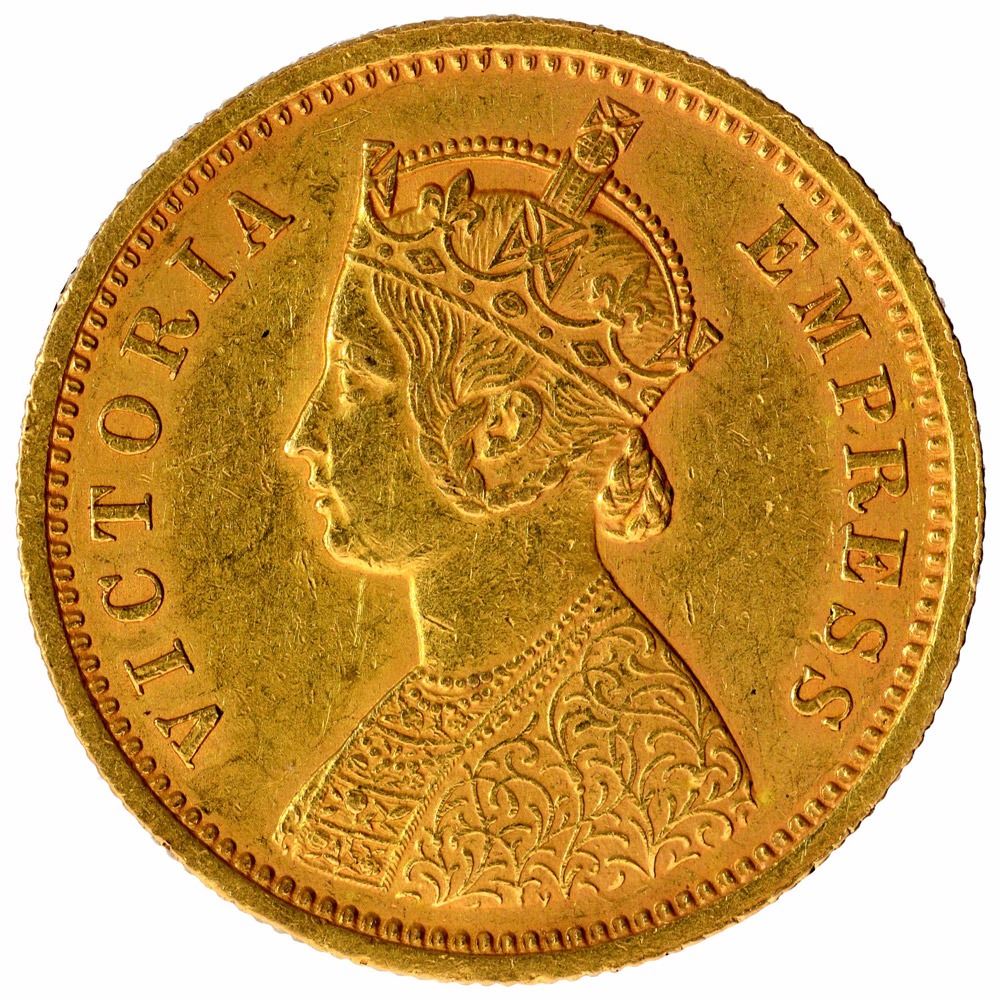Gold One Mohur Coin of Victoria Queen of Calcutta Mint of 1882.