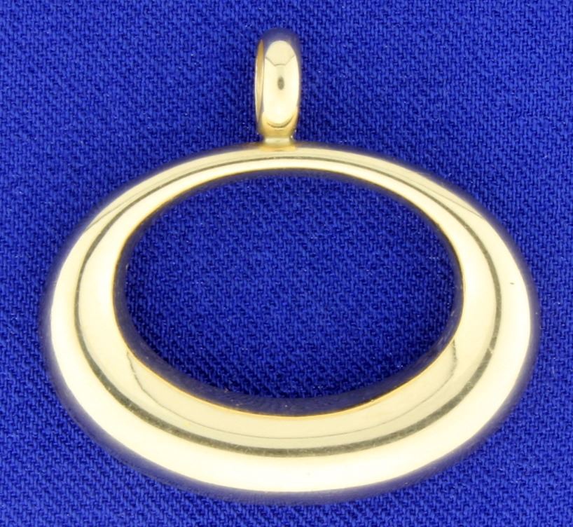 In 14K yellow gold it is 1 3/8 inches long. Large 6.5mm bale. 3.0g