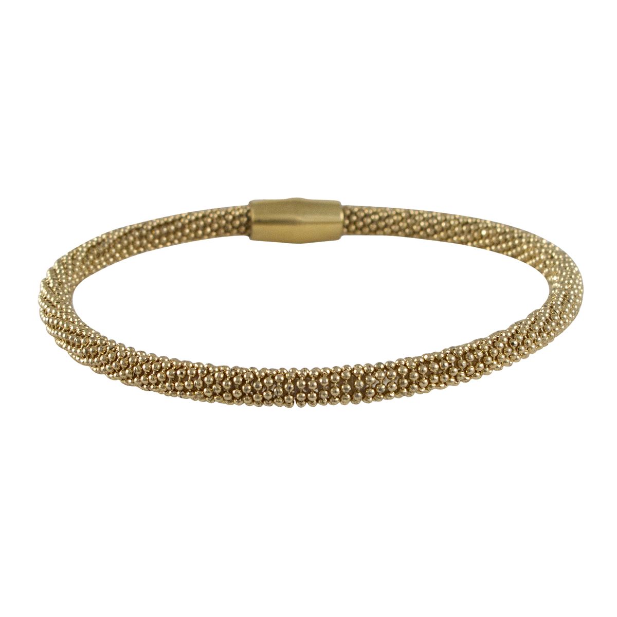 Gold Over Stainless Steel Mesh Magnet Bangle Bracelet- 7"