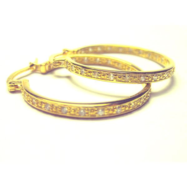 Gold Over Sterling Silver 30Mm Hoop Earrings, White Czs