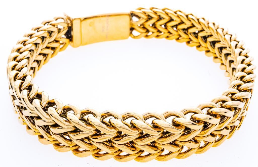 Gold Overlay/Stainless Steel Bracelet, Interfwoven Design, 8"