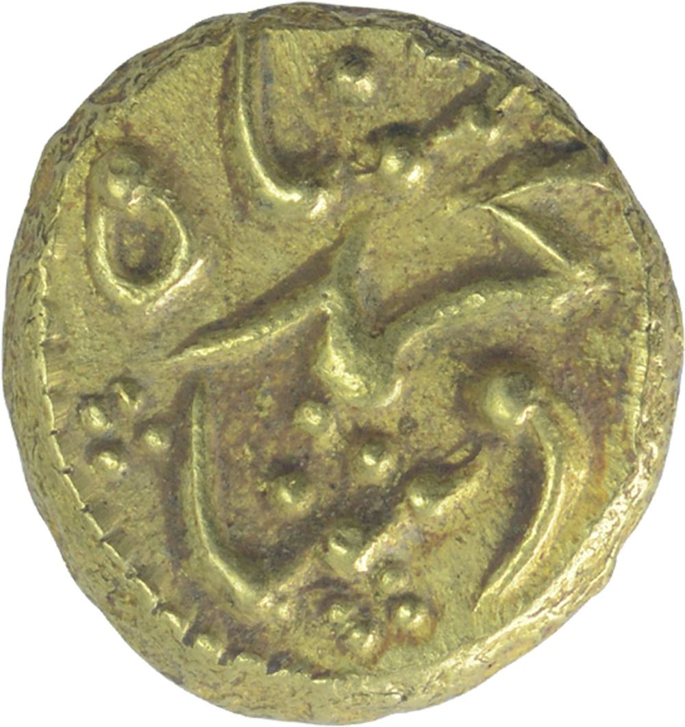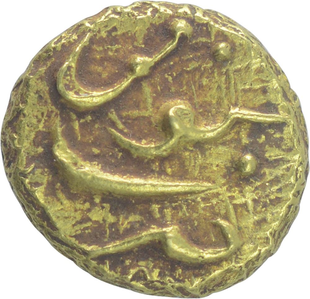 Muhammad Shah, Guti Mint, Gold Pagoda, Obv:badshah mahammad shah,Rev:zerb guti,2.73g, 10.86mm,(KM # E440.2),about extremely fine,Scarce.
