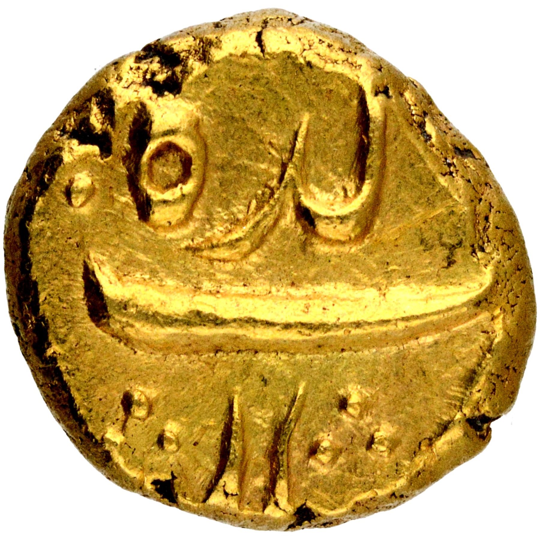 Muhammad Shah (AH 1131-1161/1719-1748 AD), Imtiyazgarh Mint, Gold Pagoda, AH (113)8, Obv: Persian legend 'Badshah Muhammad Shah', with Hijri year (113)8, Rev: Persian legend 'zarb Imtiyazgarh', 3.5g, 10.89mm, (KM # E440.1), choice extremely fine, Scarce.