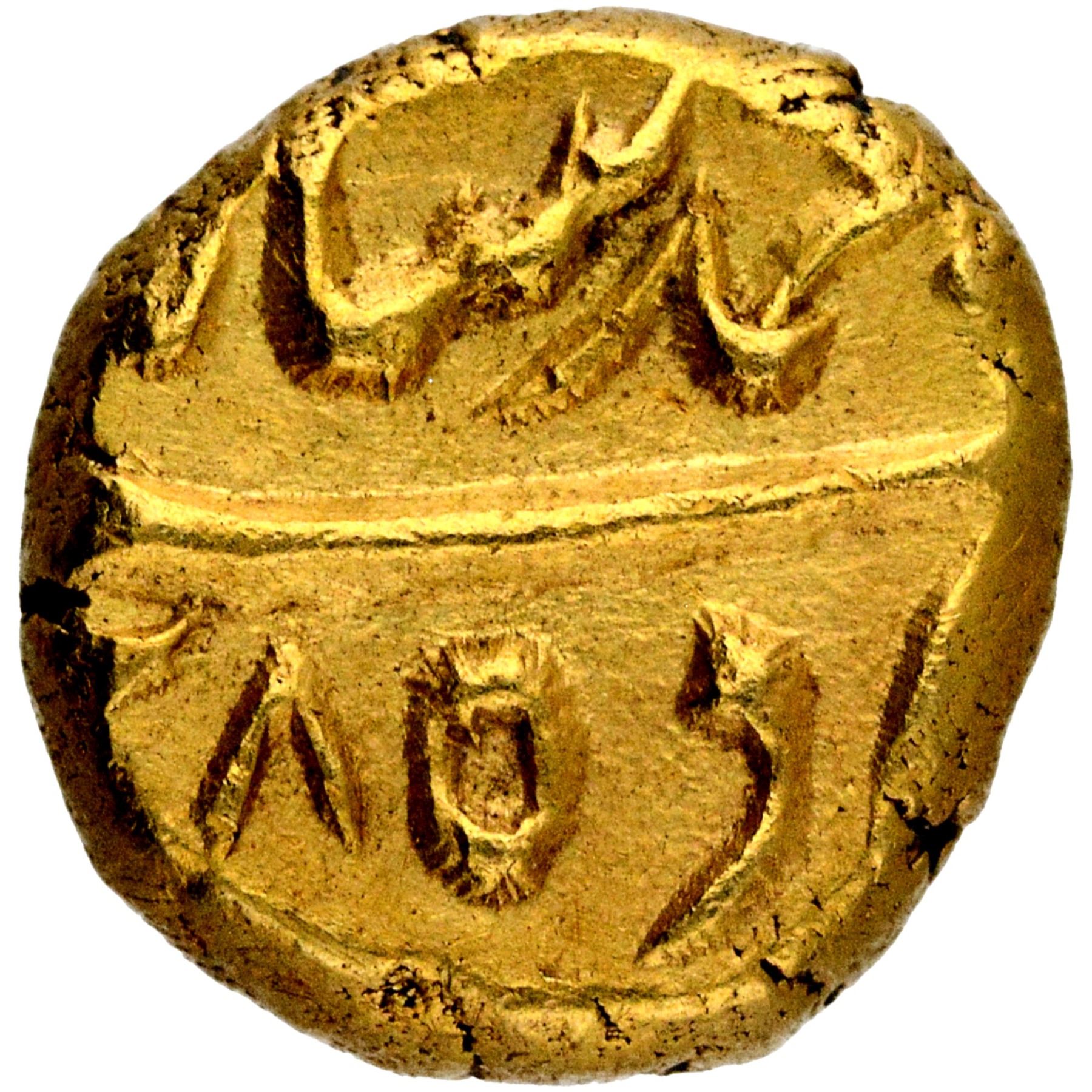 Muhammad Shah (AH 1131-1161/1719-1748 AD), Imtiyazgarh Mint, Gold Pagoda, AH (113)8, Obv: Persian legend 'Badshah Muhammad Shah', with Hijri year (113)8, Rev: Persian legend 'zarb Imtiyazgarh', 3.5g, 10.89mm, (KM # E440.1), choice extremely fine, Scarce.