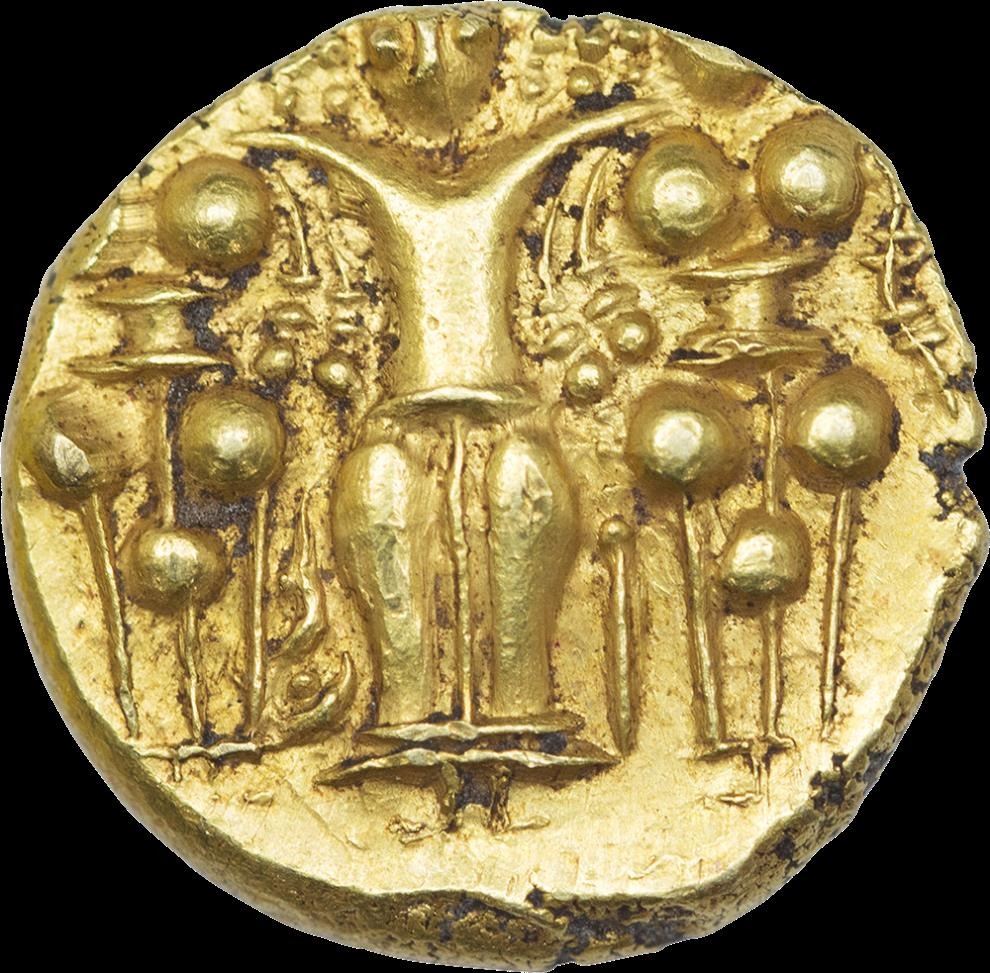 Arcot, Umadat-ul-Umara,Gold Pagoda, (Ain Pagoda), Obv:3 "Swami",Rev:arabic"AIN"on granulated surface, 3.42g, 12.08mm,(MCS11 # 845),about extremely fine, Scarce.