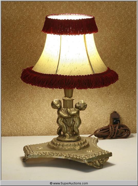 Gold Painted Plaster Putti Cupid Lamp with Ruffled Shade (#2044030)