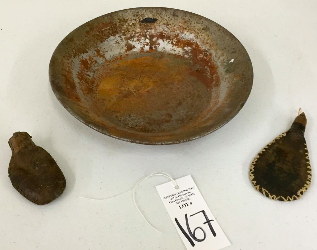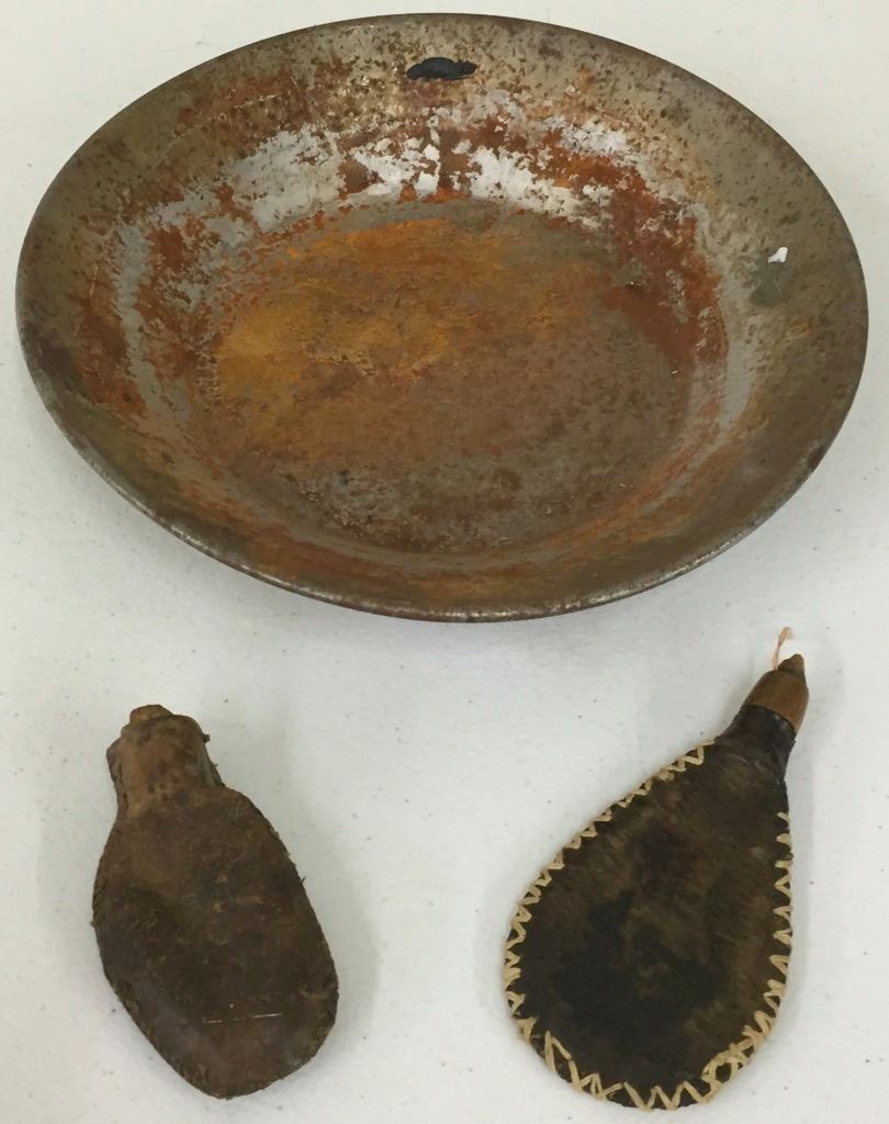 The gold pan measures approx. 12” across by 2” deep. The powder container is approx. 6” long and the shot container is approx. 5” long. Please look closely at pics as they are an important part of our description. Shipping: There will be a $6 handling / packaging fee for shipping this lot. The actual cost of postage will be added on top of that.