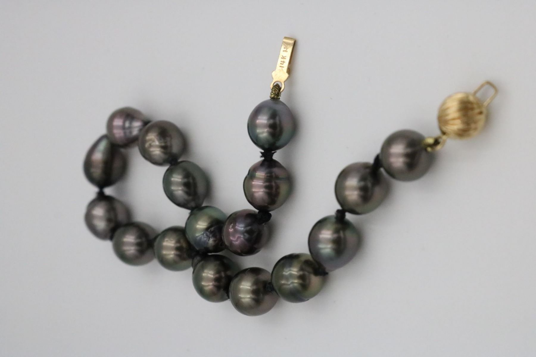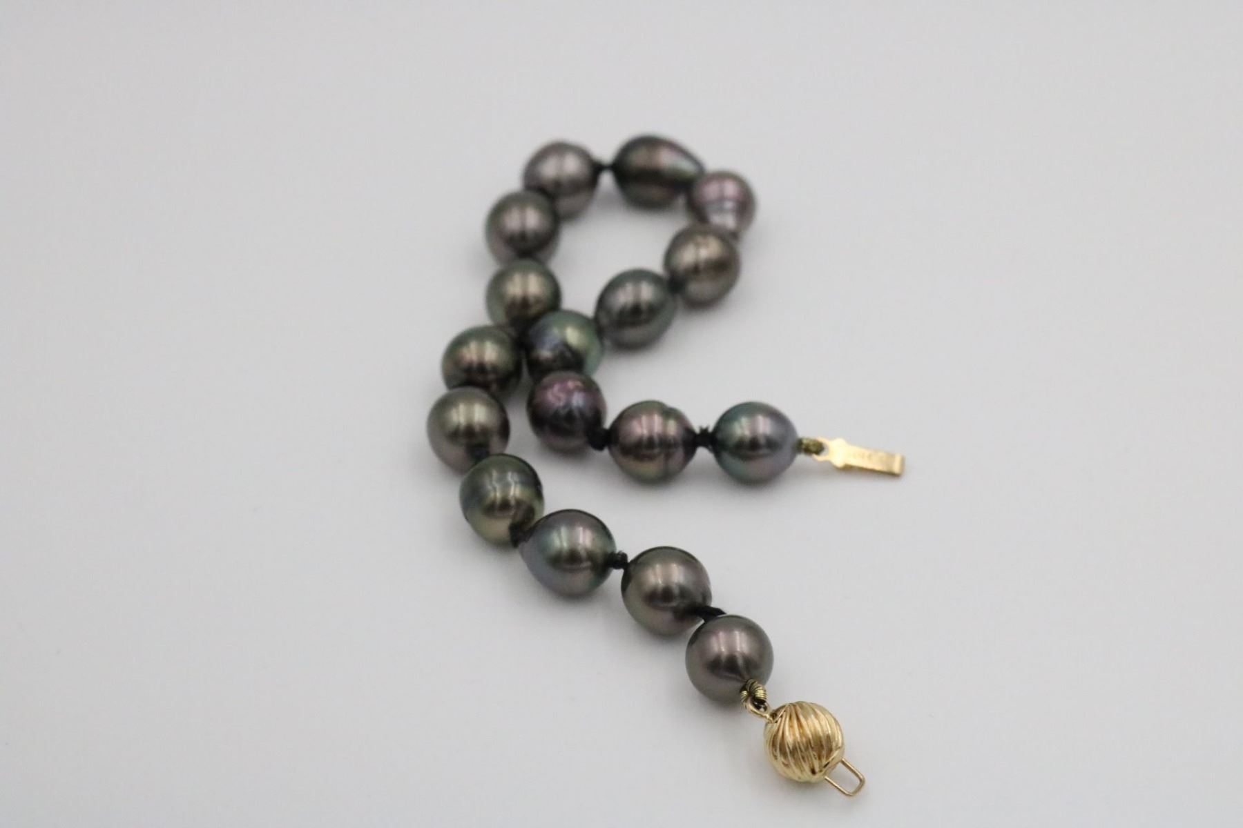 17 baroque black pearls = 8.0mm; 7 1/2"