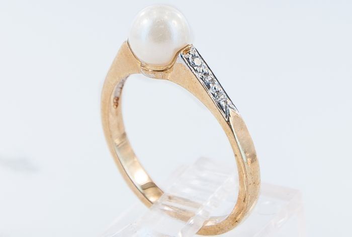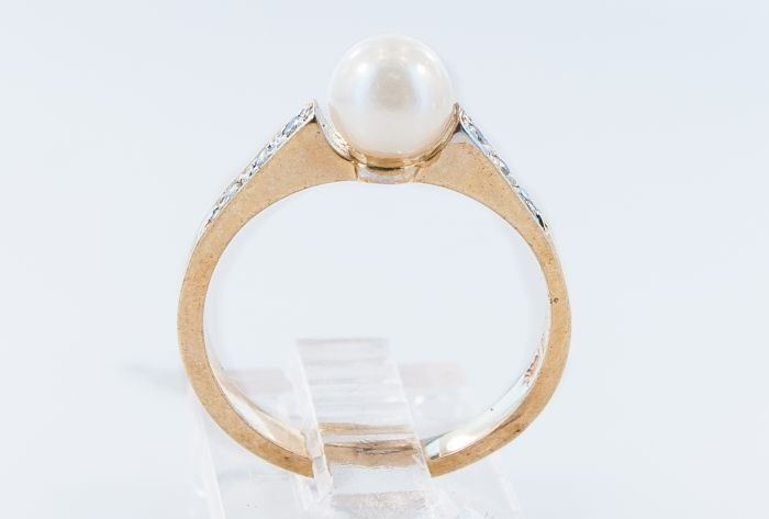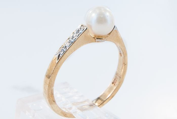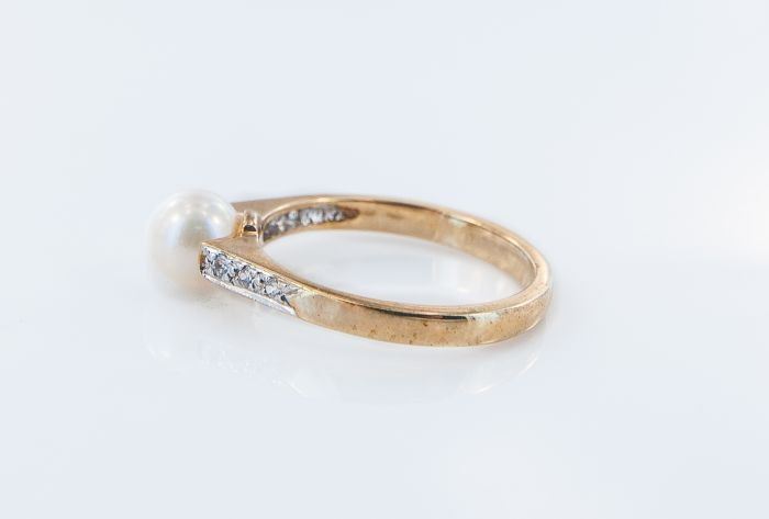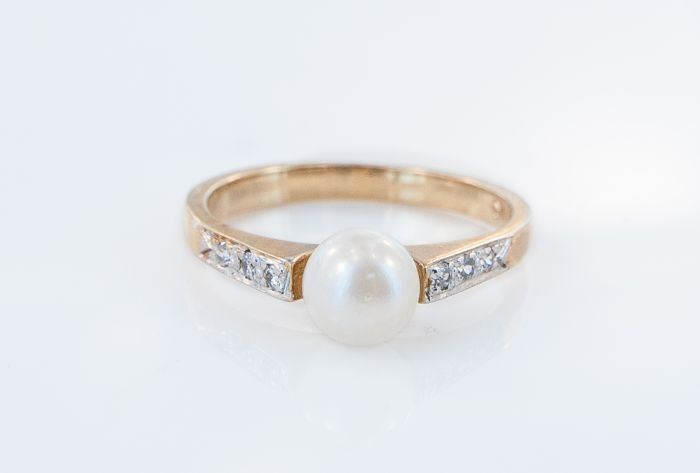 Style: Contemporary Yellow Gold Cultured Pearl Diamond Ring