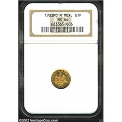 Gold Peso 1903 Mo-M, KM410.5, MS64 NGC. Fully lustrous and bright with a few small die cracks on the