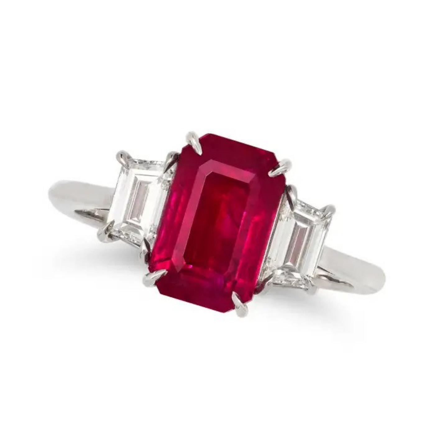 Pigeon Blood Red Lab Ruby 5 Carats & 2.25 Carats Lab Diamonds Ring; Diamonds color E/F/G, Diamond Clarity VVS/VS; 14 K Gold (may choose white , yellow or rose Gold )