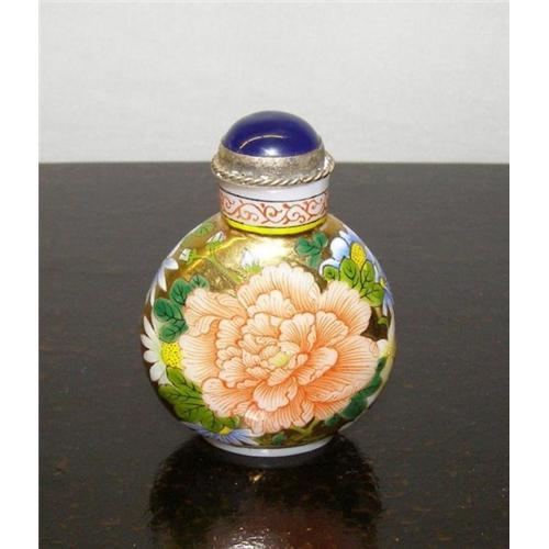 You are looking at this delicate hand painted snuff bottle. This bottle is make with Perking Glass. It's body is plate/tinct with real gold and painted with beautiful flowers. This is a true collecor item !!!