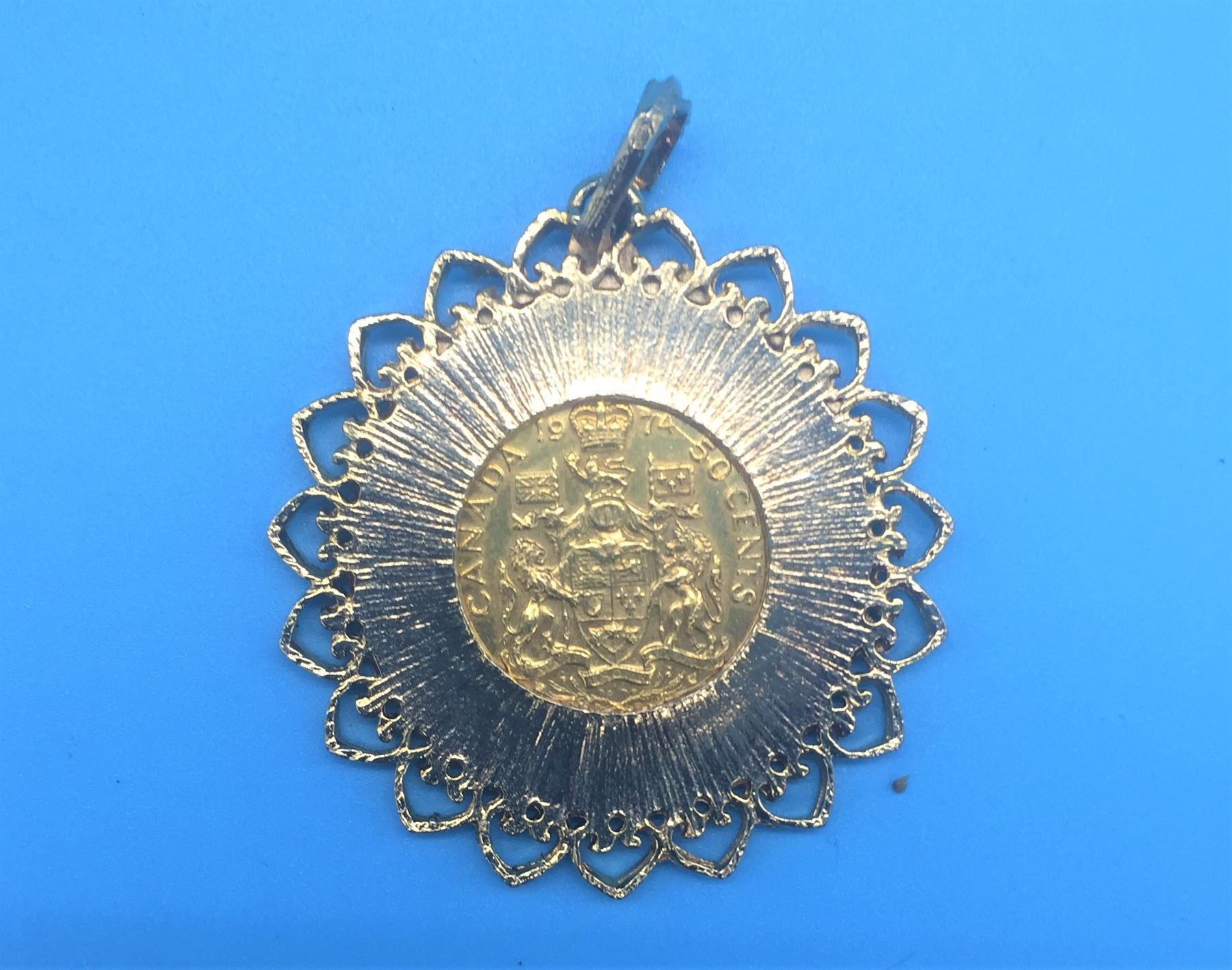 Gold Plated 1974 Canadian 50 Cent Coin in a Beautiful Bezel.
