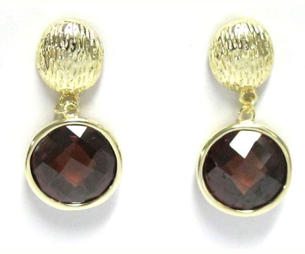 Gold Plated Brass Earrings With Round Smoke CZ -925 Post