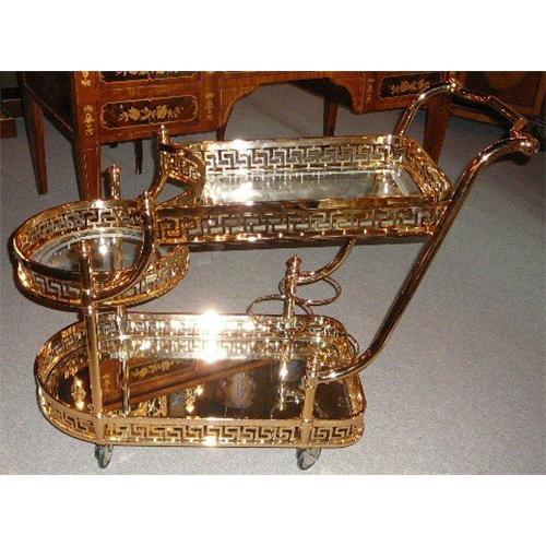 <tr><td>Title:Gold Plated Brass Teacart Trolley Server</td></tr>