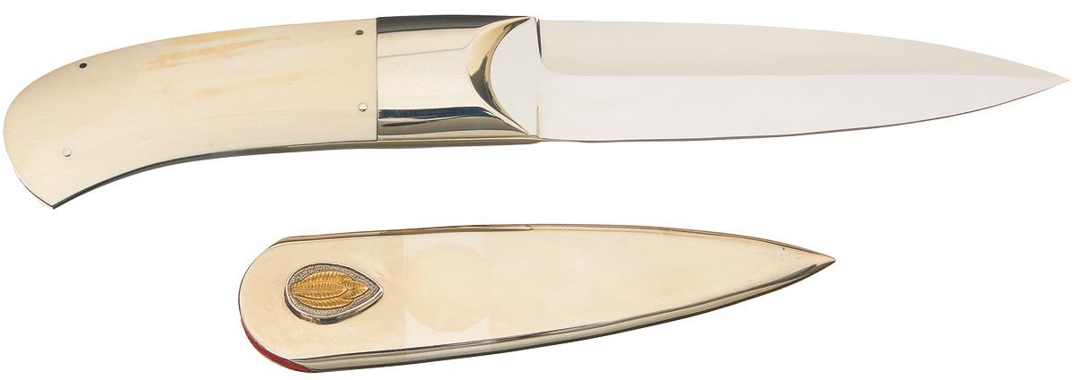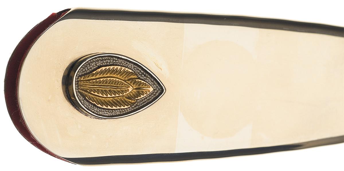 Condition: Excellent, with a few minor scratches. The ivory has a nice grain pattern and the engraving retains over 99% of the gold plating. The sheath has some minor scratches (mostly near the tip).