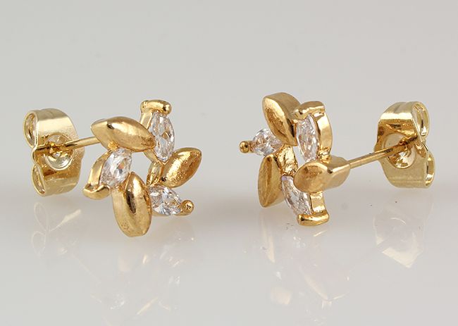Gold Plated Flower Stud Earring with Clear Crystal **|**|** Fashion Jewelry Flower Design Gold Plated Stud Earring with Diamond Swarovski Crystal ; MSRP: $100