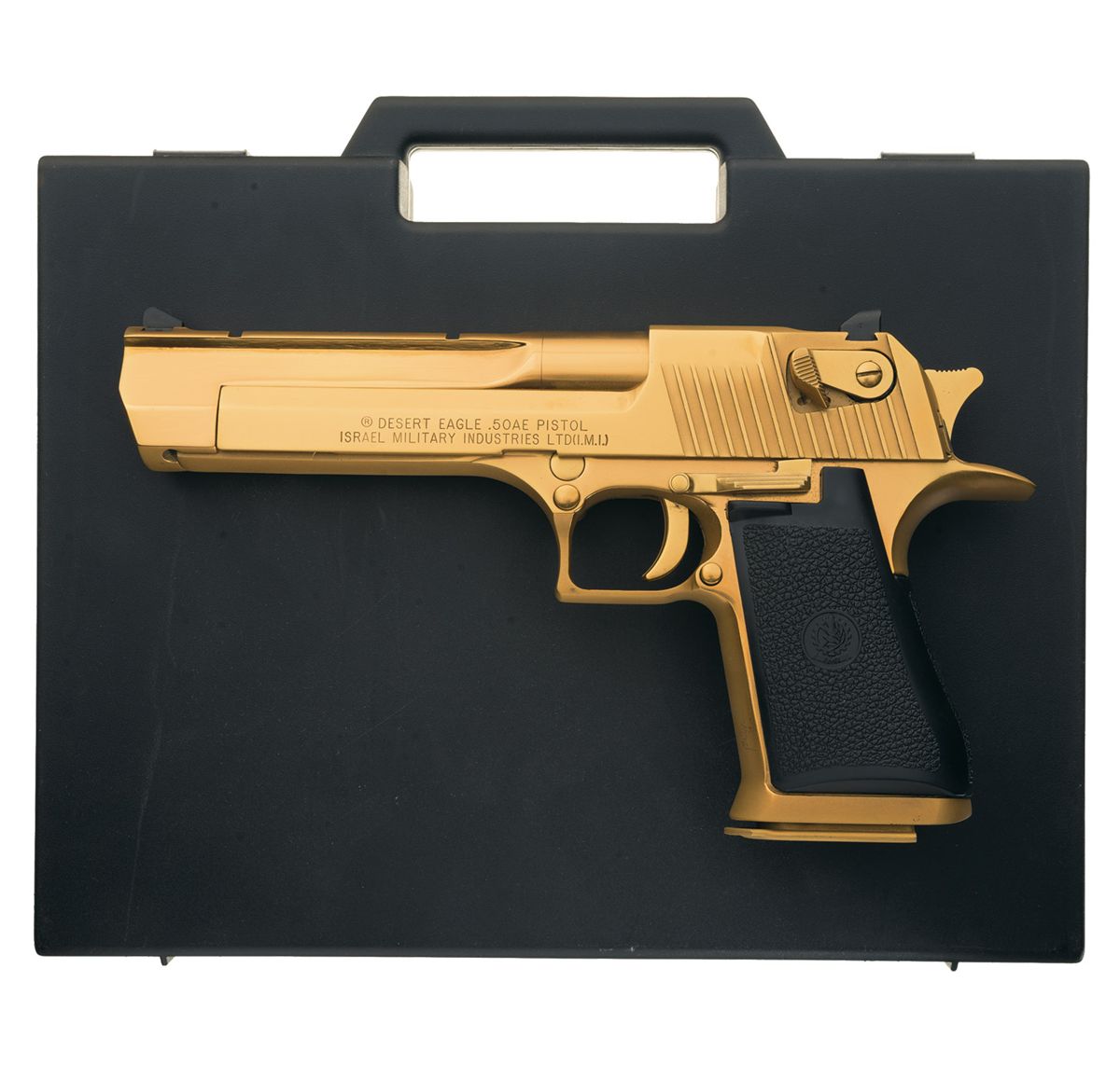 Gold Plated I.M.I. Desert Eagle Semi-Automatic Pistol with Case in .50 Action Express Caliber