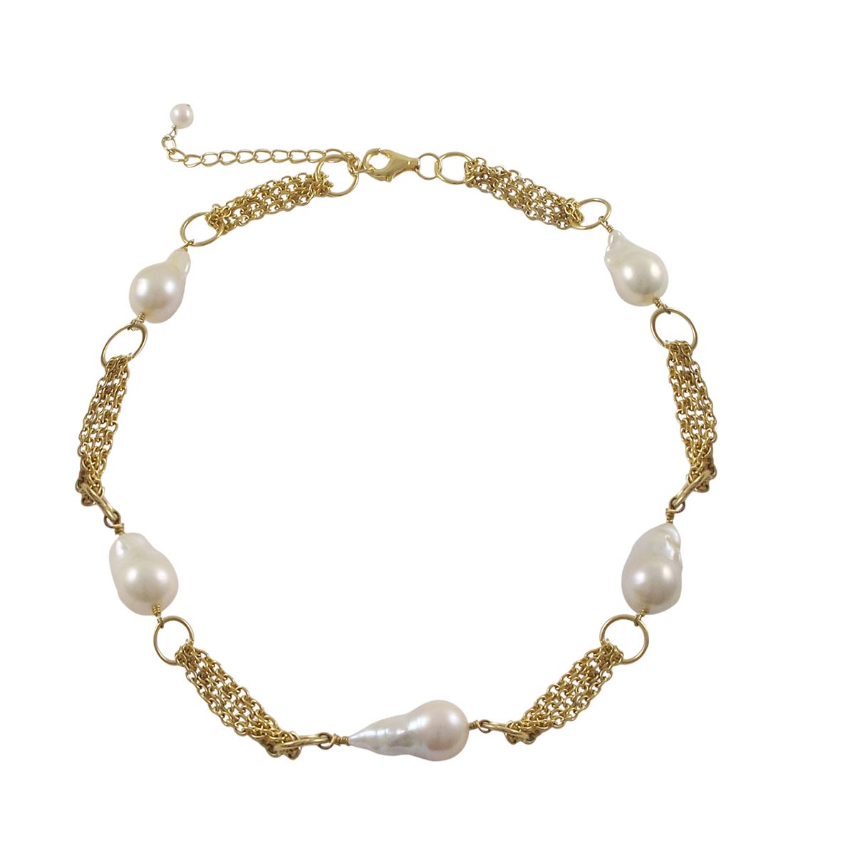 Gold Plated Multi Strand Fresh Water Pearls Necklace.